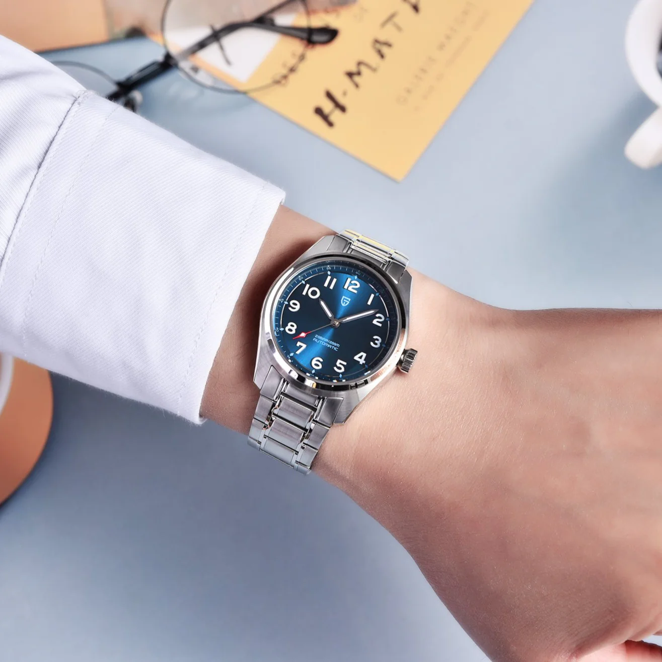 Acabado en acero inoxidable 316L. Cristal de Zafiro con tratamiento antirreflejos. Movimiento automático Japonés Miyota 8215 con 42 horas de reserva de marcha. Resistente al agua 20BAR/200M