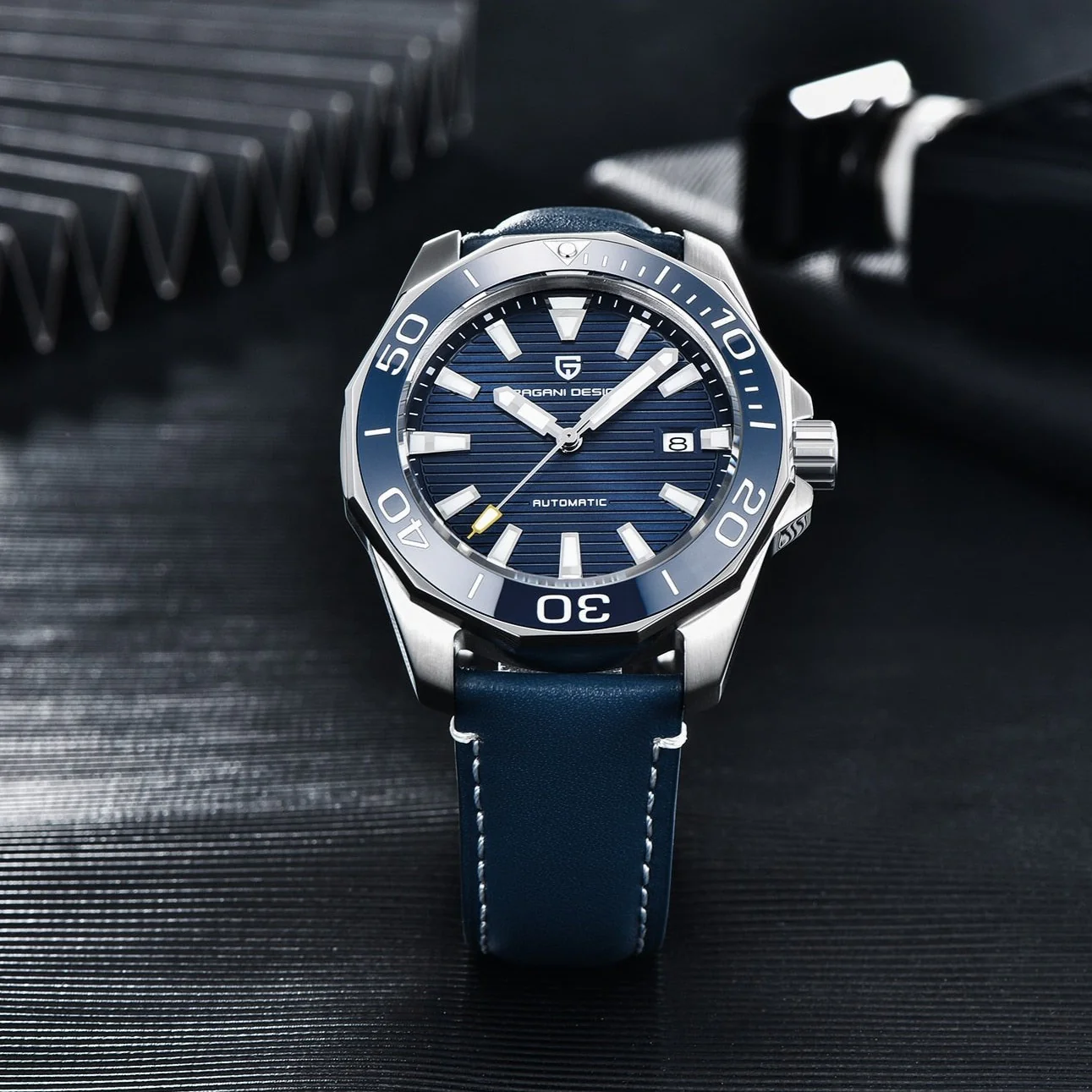 Cristal de zafiro, bisel de cerámica en colores, movimiento Automático Miyota 8215, acero inoxidable 316L y resistente al agua 100M.