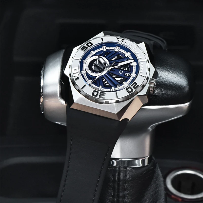 Movimiento automático Japonés Miyota 8217 con 42 horas de reserva de marcha. Acabado en acero inoxidable 316L.